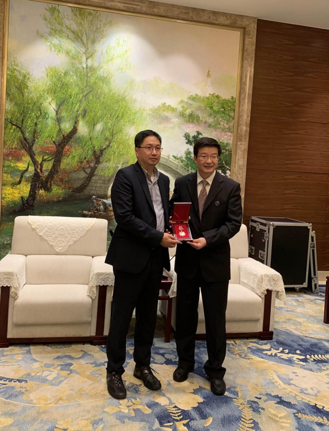 On October 26th, Deputy Mayor Yu Ting of Yangzhou City - Jiangsu Province presented the “Jiangsu International Friendship City Cooperation Commemorative Medal” to Mr. Zhang Wenlong, President of the Sino-American Business & Travel Association. The award was organized and selected by the Jiangsu Provincial Foreign Affairs Office and awarded to a total of 31 international allies in recognition of their positive contributions to promoting the opening up of Jiangsu Province to the outside world, strengthening exchanges and cooperation between international friendly cities, and enhancing understanding and exchanges between people from all over the world.