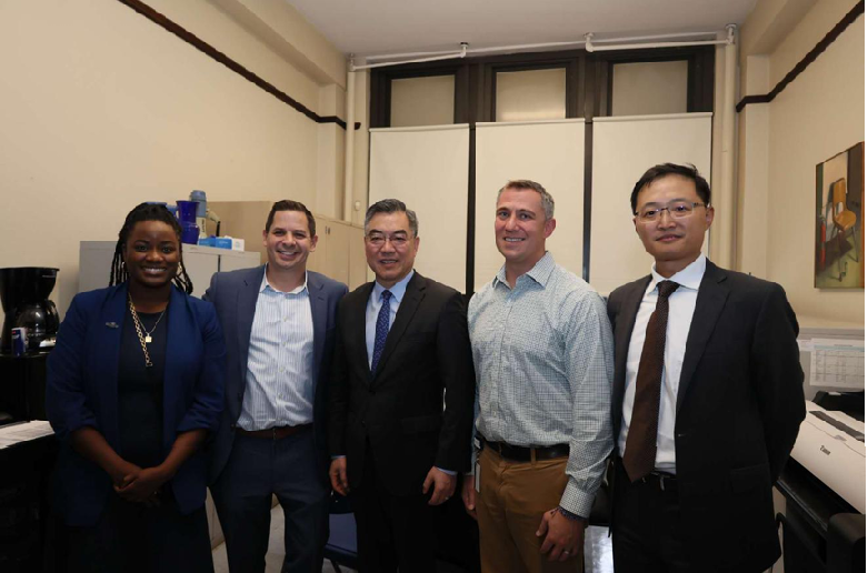 米切尔等欢迎黄屏一行来校走访,介绍学校历史、发展现状及理念,表示此访将为学生打开一扇更好认知中国、了解国际事务的窗户,将为同学们更好理解文明多元化、践行学校“和谐与多样性”价值观提供宝贵机会。希望中美人文教育交流更多惠及年轻一代。