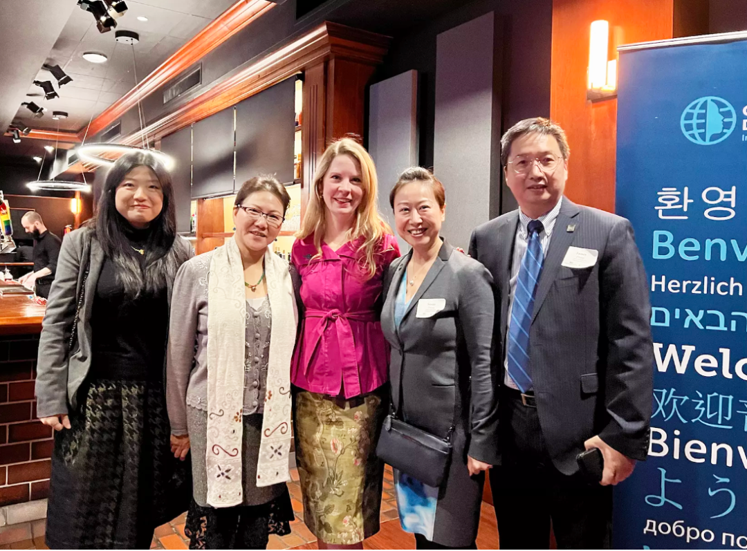 左起分别是德诺国际教育执行主任Vivian Han,美中商旅总会董事长Mei Ren,费城世界事务委员会主席Lauren Swartz,德诺国际教育总裁 Susan Zhang,美中商旅总会会长 James Zhang