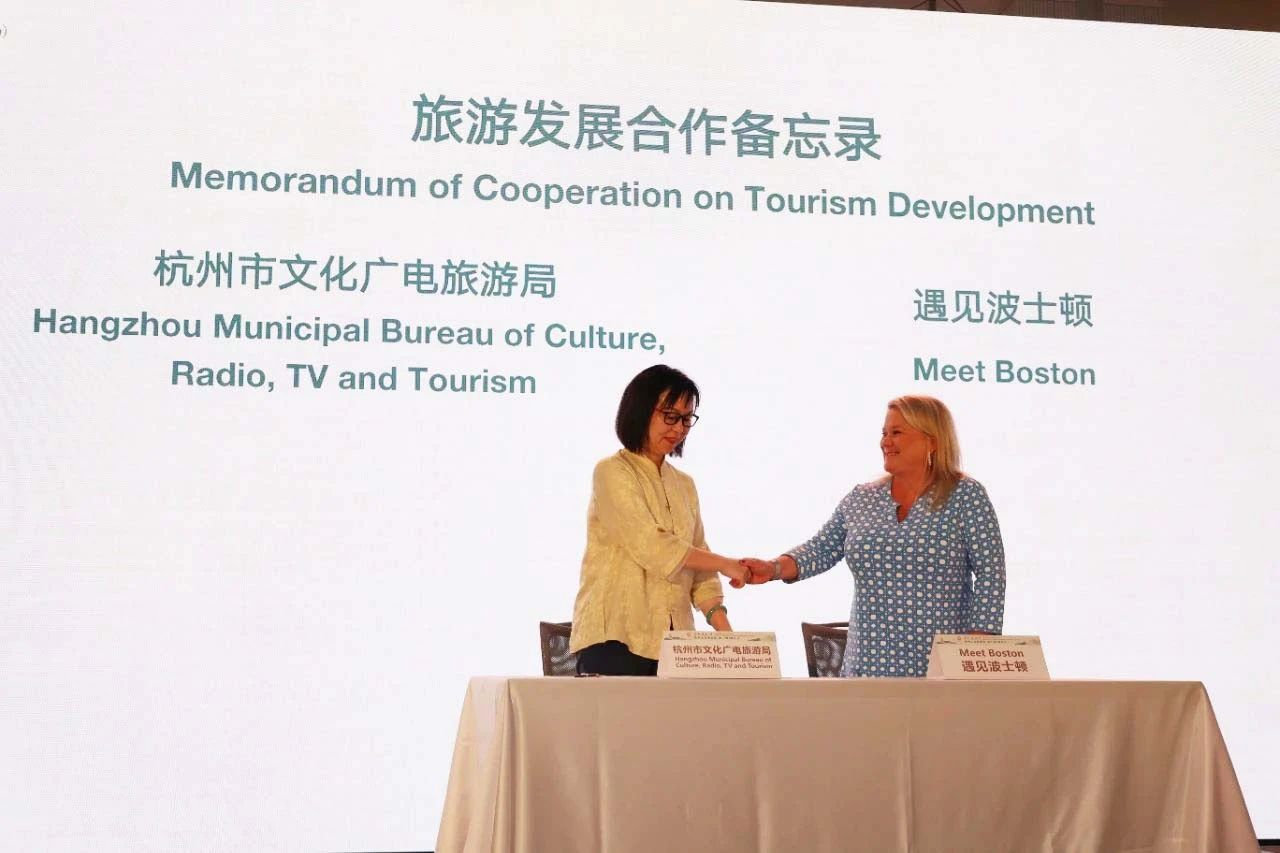 At the conference, relevant departments and organizations of Hangzhou and Boston also signed the Memorandum of Cooperation on Tourism Development and the Tourism Cooperation Agreement, laying an important foundation for practical cooperation in culture and tourism between the two places. The U.S.-China Business and Tourism Association and Hangzhou Travel Agency Industry Association signed a contract at the promotion meeting, which will strengthen the communication between Hangzhou and the United States, and promote the beauty and culture of Hangzhou to more American people.